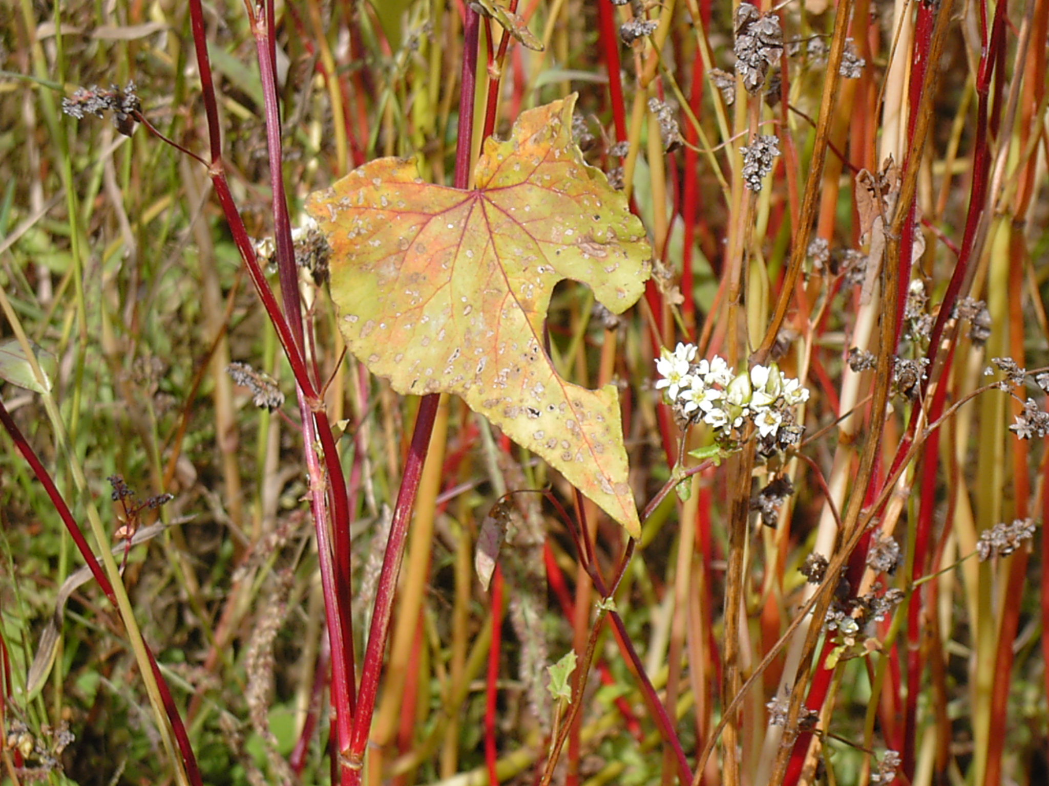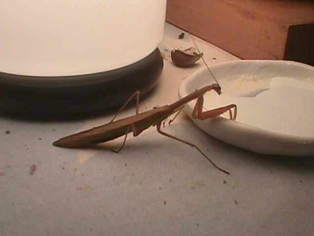 何年か前カマキリが家の中を旋回していました。障子を開け放しても一向に表に出て行きません。何日かして、手を出すと腕や肩に留まります。外出先から帰るとカマきりを探すようになり、主人が『カマ子』と名前を付けました。もう住人になったようです。お客様にも紹介手乗りカマキリの『カマ子です』。ランプの横が定位置となり、玉子焼きやハム、を手で食べさせ、はては馬刺し迄食べるようになり、朝食は先ず牛乳とパン等を・・・このカマキリのカマ子も、雪が降り始める頃、私達が見守る中永眠して行きました。遺体はハーブ畑の入り口電柱横に埋めてやりました。この『カマ子』の事を開田おやじのTさんは随筆木曽春秋第4号・・開田村幻想・・・の題で投稿して下さいました。又機会がありましたら読んで見て下さい。