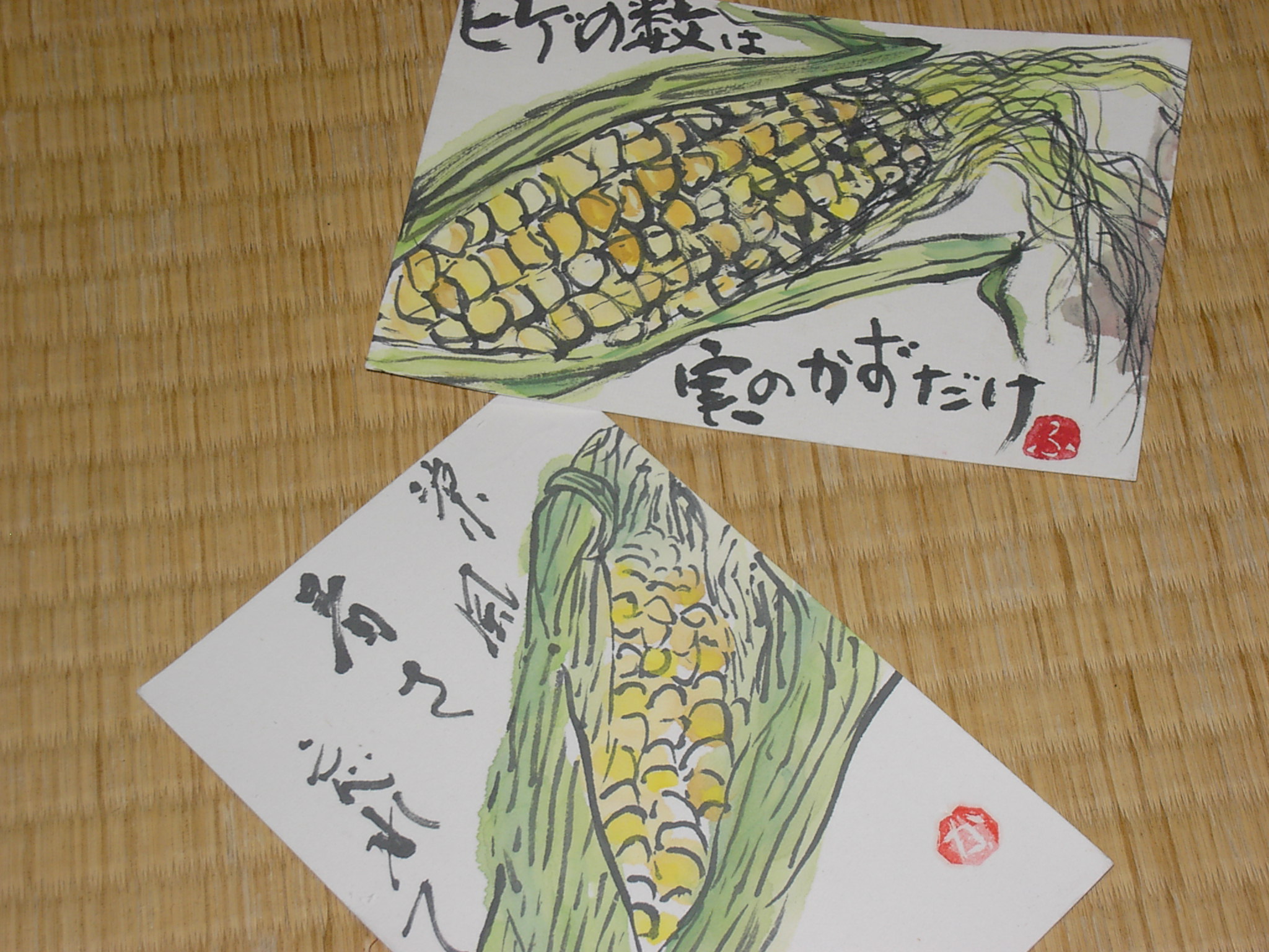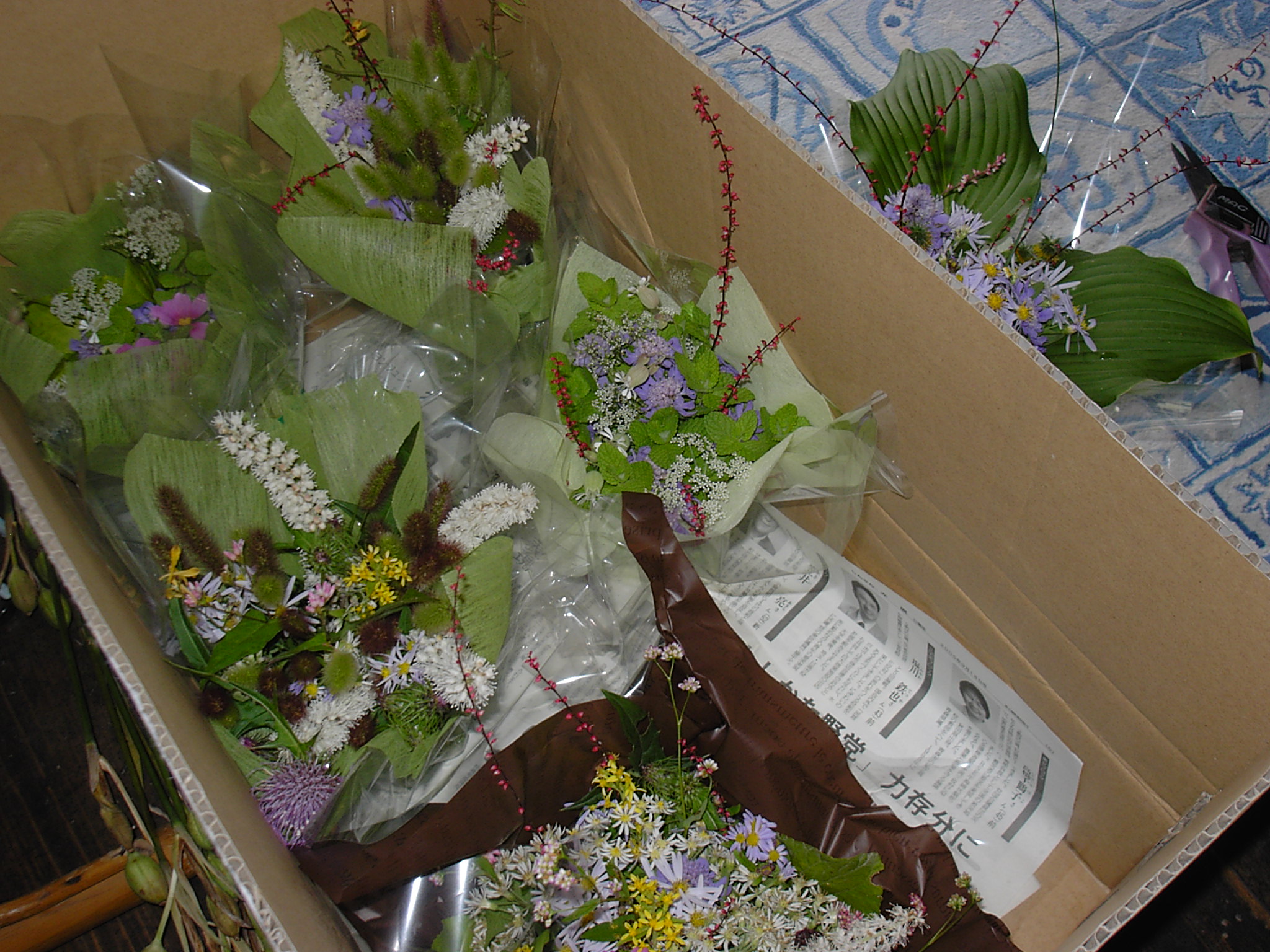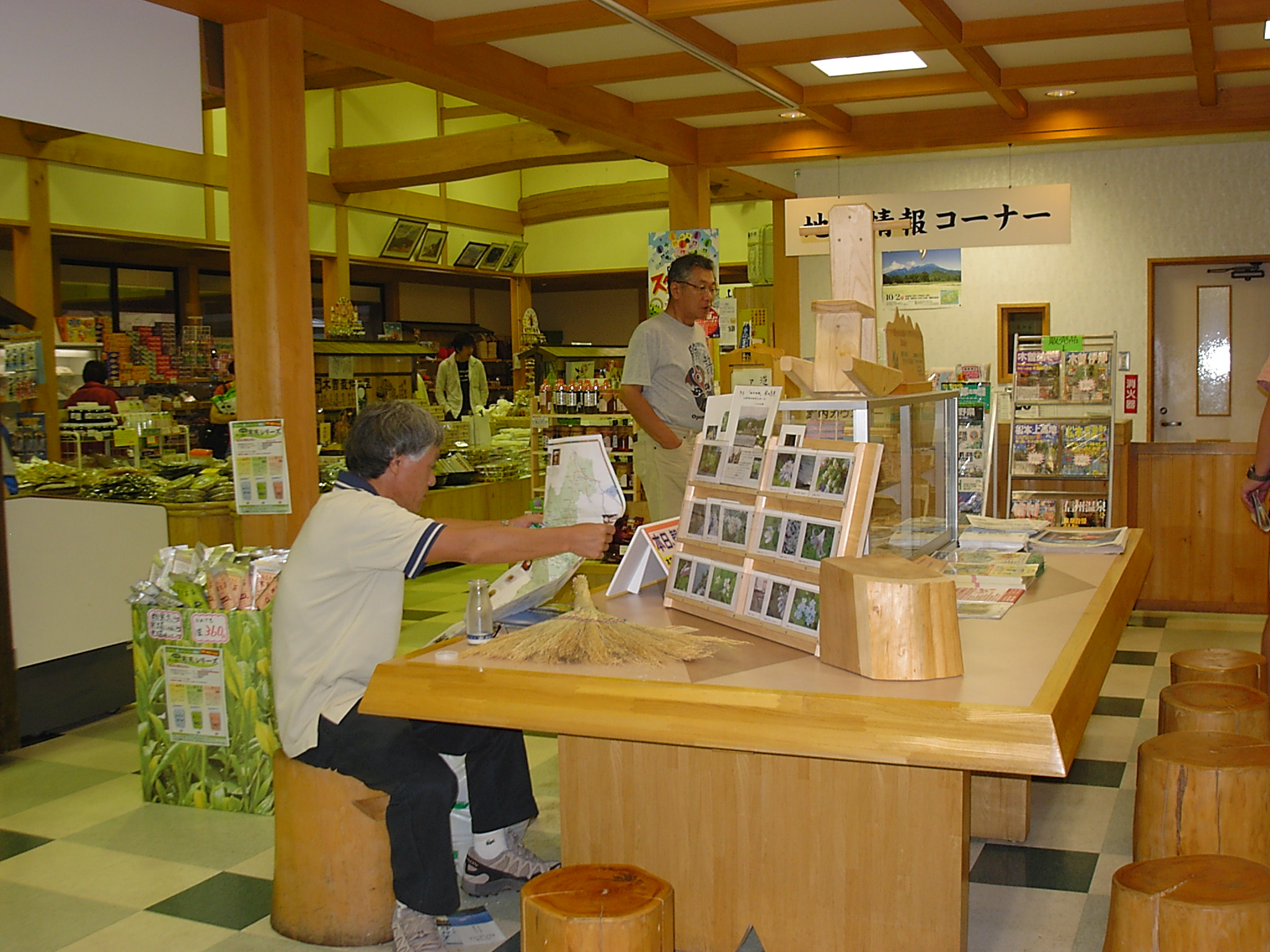 昨日『道の駅日義』にて観光案内してきました。朝早くから村人は次々に新鮮な、きのこや野菜の搬入にいい笑顔で来られていました。長さ10cm大のわさびが300円、わさび漬け・味噌漬けも手作りされていて、安い!ついつい買っちゃいました。観光客は台風の影響か午後はパラパラとそれでもレジの方は一人では間に合わない位で「店長」呼びに行って来て!と私は店内を店長さん探しに走り廻りました。観光案内はやはり『権兵衛峠の開通はまだ〜』との質問が多く皆さん待ちかねて居られる事痛感しました。今は蕎麦の花コスモスも終わり、紅葉には少し早い為、渓流・滝巡りを開田高原の木曽馬の里・高森・尾の島の滝・やまゆり荘から三岳倉越パノラマ・油木美林から上松へのルートを沢山の方に紹介してきました。午後78歳の女性の方が正面階段の中程から転落『ゴツン!』とスゴイ音がしたヨ!とのお客様からの通報で救急車を呼び、木曽病院に搬送されました。左半身の打撲と鼻血が出ていましたが意識ははっきりとしておられ、どうか早く回復されましように。あずき亭のポストカード『沢山置いとくと盗られるよ!』と言われましたがテーブルの端を占拠、開田の山野草見て楽しんで下さい。