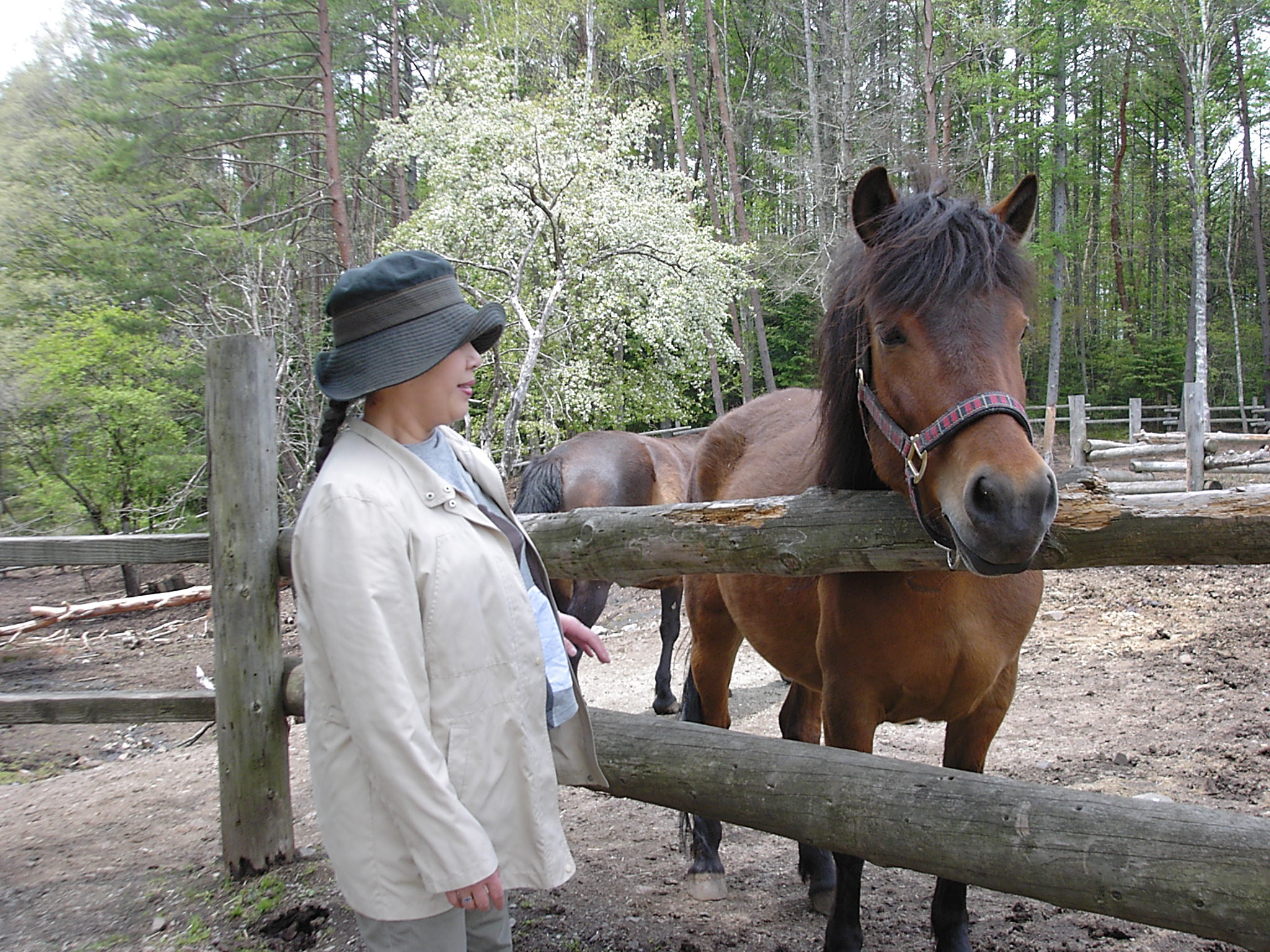 奈良から友人が、開田高原は初めてなので、話にも花が咲き、又いいところ沢山見せて上げたい・・・白樺の木々に浅黄色から若草色・濃緑と山々の新芽の色合いにも。未だ残る山桜や黄色い花は何・・・・。と見るものに感動の気持は昔とちっとも変わっていない。『又来るね・・・。』いろんな季節にいろんな表情の開田高原又何時でも来てください。木曽路も歩いてみたい・・・、私も未だ歩いた事が無いので、一緒にボツボツ歩きましょう・・・。
