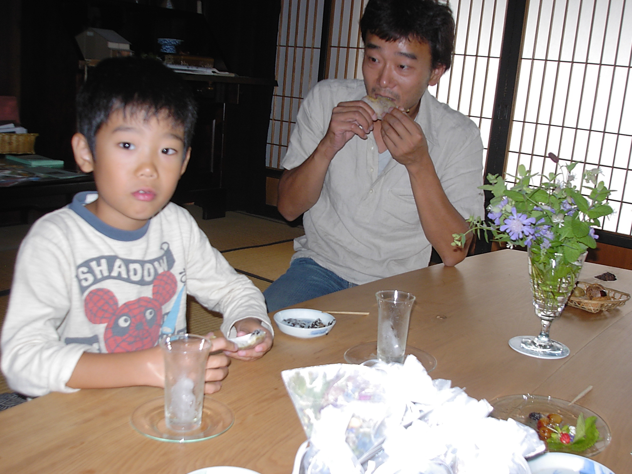 『天婦羅揚げるから来ない・・・』と夕方杜子春と御呼ばれに出掛けました。三岳に別荘お持ちのGさんが板前さん、目の前で揚げたての天婦羅は、まるで料亭の味でした。粉にビールを混ぜるのが、コツ・・・。勿体ない・・・と杜子春。ソースもこだわりで、ある料理屋さんに7年通って、秘伝のソースを分けてもらい、やっぱり美味しい・・・。食後可愛い○○ちゃんとトランプ遊び、最初は七並べ、の後、杜子春の発案で、昔スキーに仲間と来た夜よくやったゲーム『デンガデンガデン・・・。』早く上がった人に従い、総人数に一本足りない爪楊枝を取り合い、爪楊枝をインゲン豆に替えて、『ドン・・・』の掛け声を聞くと勢い良く取り合うので、インゲンも揉みにもまれて皺々になり・・・楽しくて、楽しくて、笑い転げ、その後カラオケ大会に・・飲むだけで無しに体も声も使いとっても健康的な夜でした。