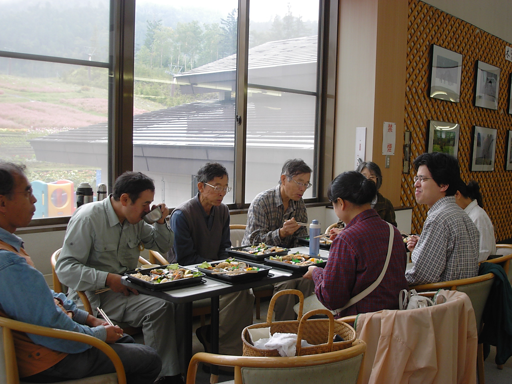 キノコを持参して下さったきのこ採りの名人Iさん、お昼はお弁当を広げ、キノコ汁に又下づつみ・・・・。本当に楽しい一日でした。