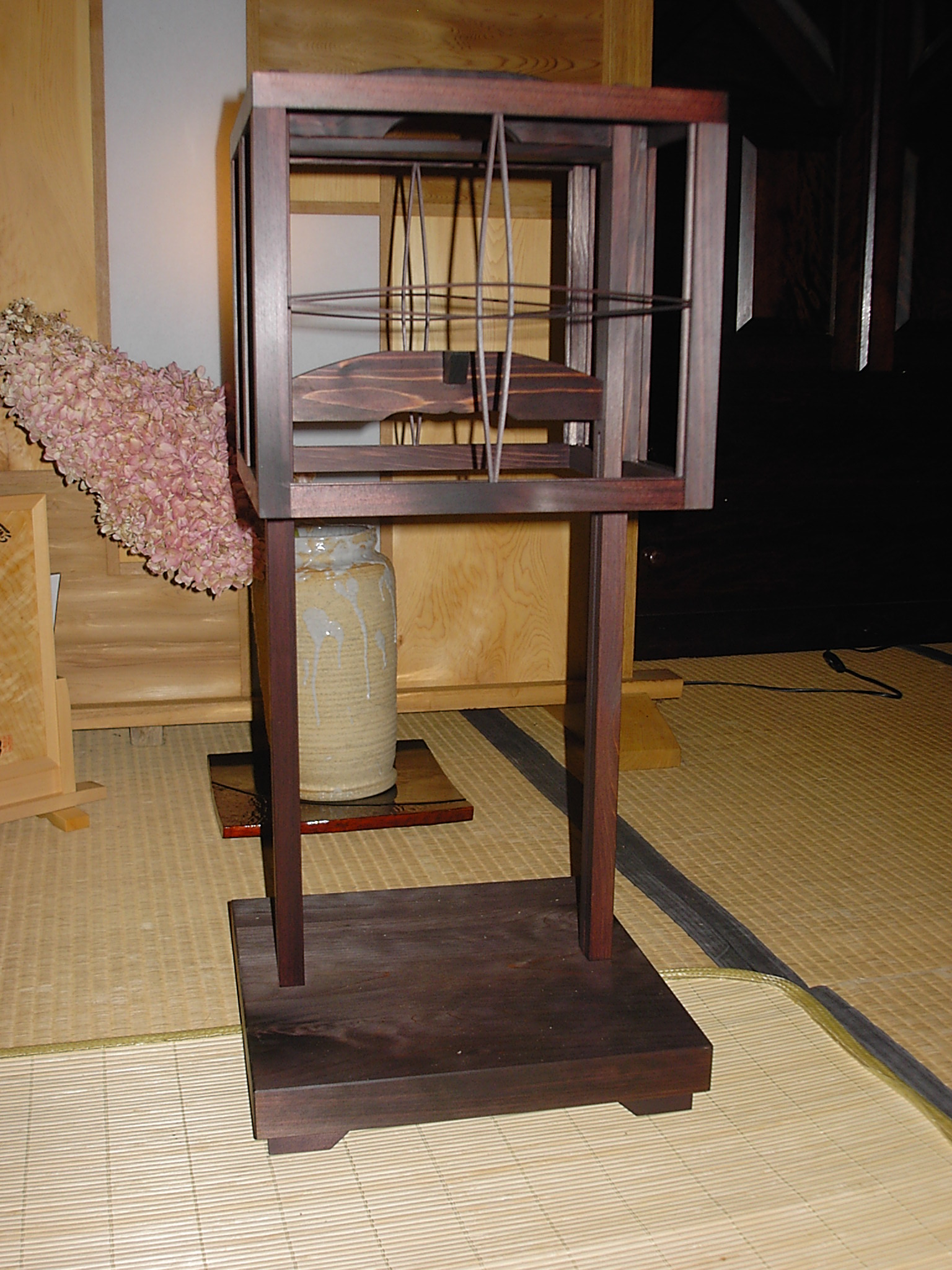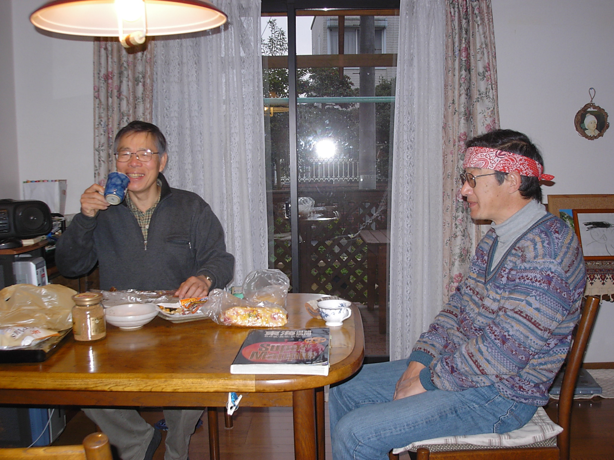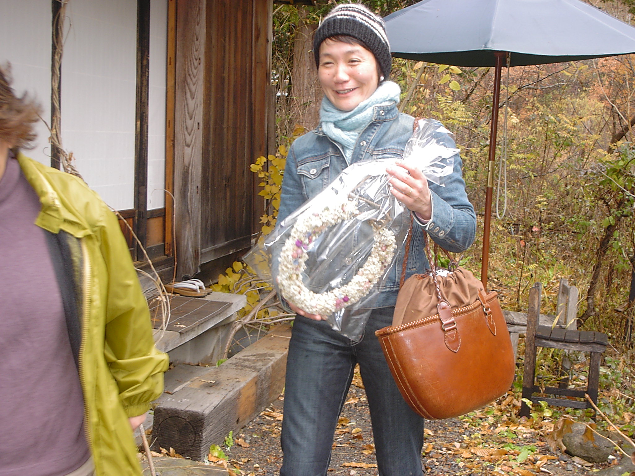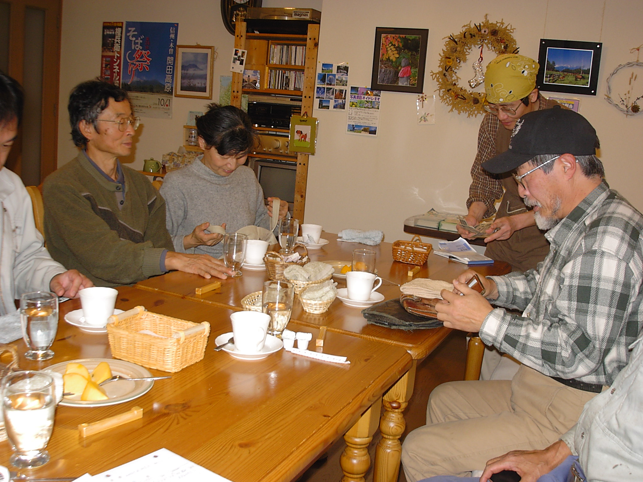 母屋は築100年位、玄関を入ると広い囲炉裏と薪ストーブが置かれた広〜い板の間、これは唐松材(信州国産材協組)建具が又素適板戸と千本格子の障子がデザイン化されています。この建物100坪あります。先日やっと屋根を直しました、面積が140坪ありました。と・・・・・いい雰囲気の女将さん、囲炉裏で草餅にコーヒー、フライパンで焼いたの!と栗が沢山入った蒸しパンどれもこれもこの雰囲気の中、満足々『何時か泊まりに来ます』と杜子春です。