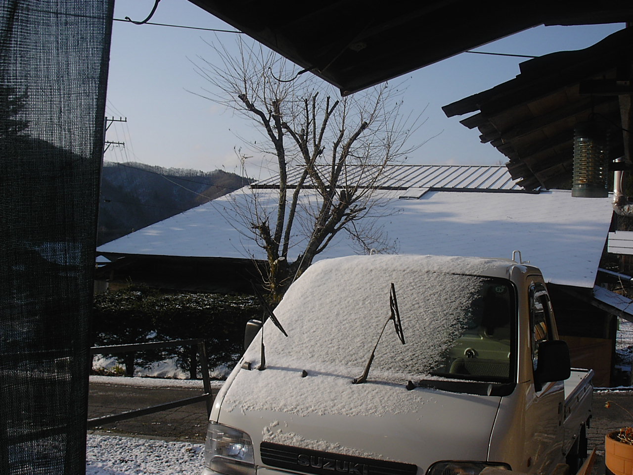 朝陽が昇り、屋根の雪がポトポトと音を立てて落ちています。。。