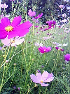 お盆を過ぎた頃に、百合に似た薄桃色の花が伸び、畑の真ん中にすっくりと立って咲いています。。