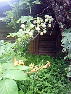 大きな栗の木は、今年は沢山の実が出来そうで・・・、桑の木に絡んだアケビも、日増しに大きくなり、回遊出来る庭の雰囲気がとてもいい・・・。