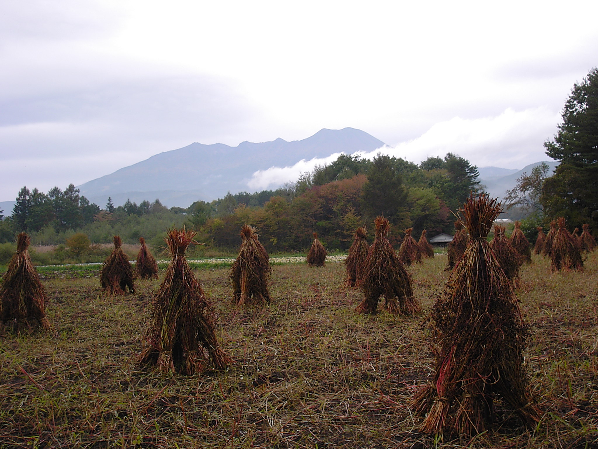 薪を積む為の場所確保、肥料や、添え木を馬小屋に片付け、トマトやキューリ・カボチャの蔓を取り除き、道際や畑脇の草刈をしました。