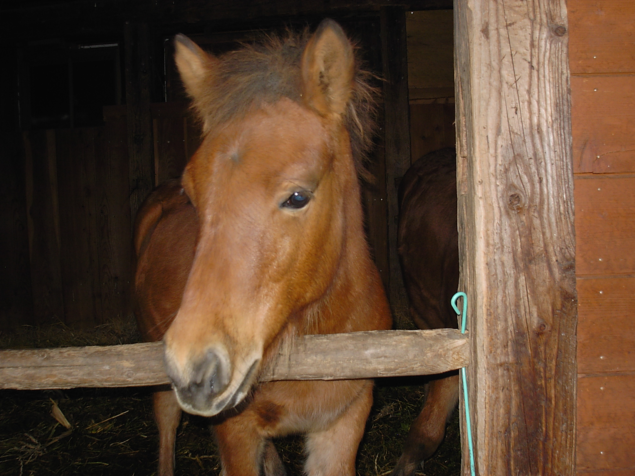 お隣の子馬が坂を昇り、道路に出た時に自動車が向かって来て。。。