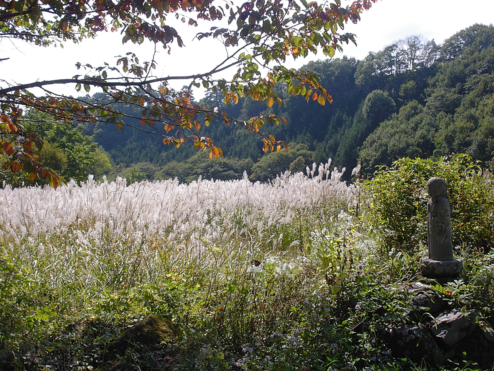 ブンブンと草刈り機がみるみるススキを倒して行きます。