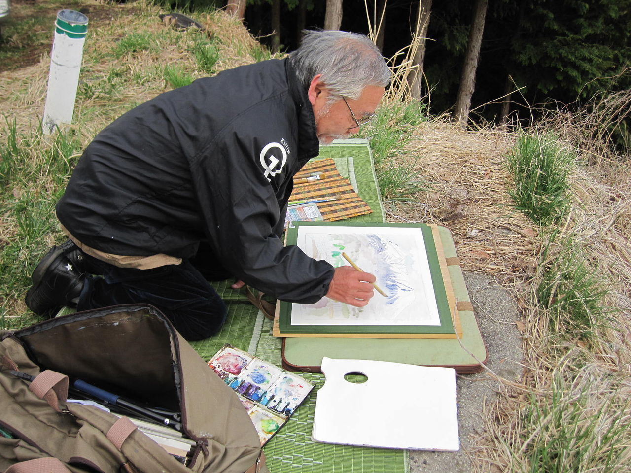 柳又上では。。こんなさむ空。。絵を描いておられました。きれいになりました。。開田高原の景色を思う存分楽しんで。。。