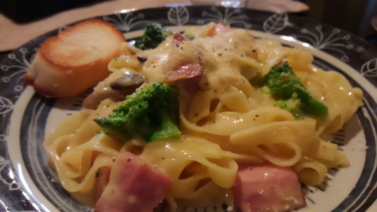 ったパスタのお店。深志神社の少し南寄り、細い露地を入った小さなお店。生パスタ処 千慶。沢山のメニューの中、ベーコンとブロッコリーのカルボナーラ。。人