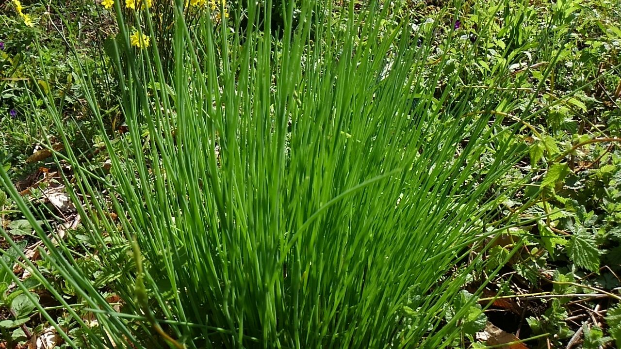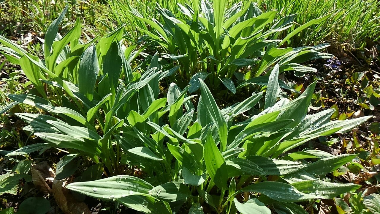声。。雨の後、畑の青葉も一段と色濃くなりました。。行者にんにくやアサツキ、ニラも食べ頃になりました。。