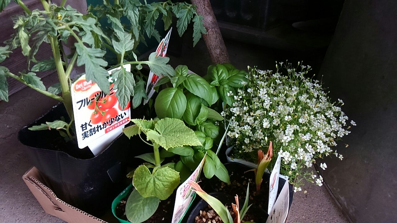 へ出掛けました。。道路際の温度計は、28度。。。歯医者のあと、野菜の苗木やハーブ類。。炎天下の中なのに、花に水やり続ける販売員さん。。。家に帰り早速水やり。。。何とか元気に立っています。。集落でも、田植え真っ最中。。。畑耕す耕運機の音がしています。