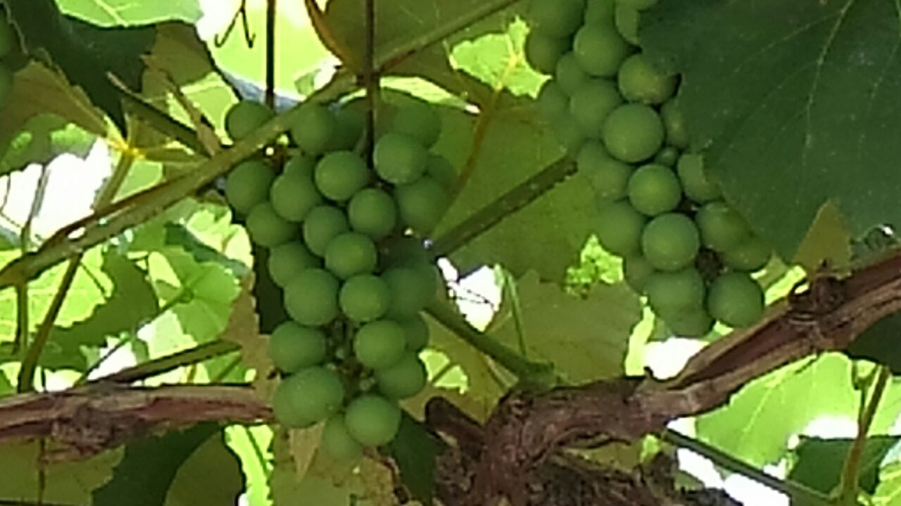 る姿が、あちらこちらで。。。ブドウの房も大分大きくなってきて。。熟するのが、楽しみです。