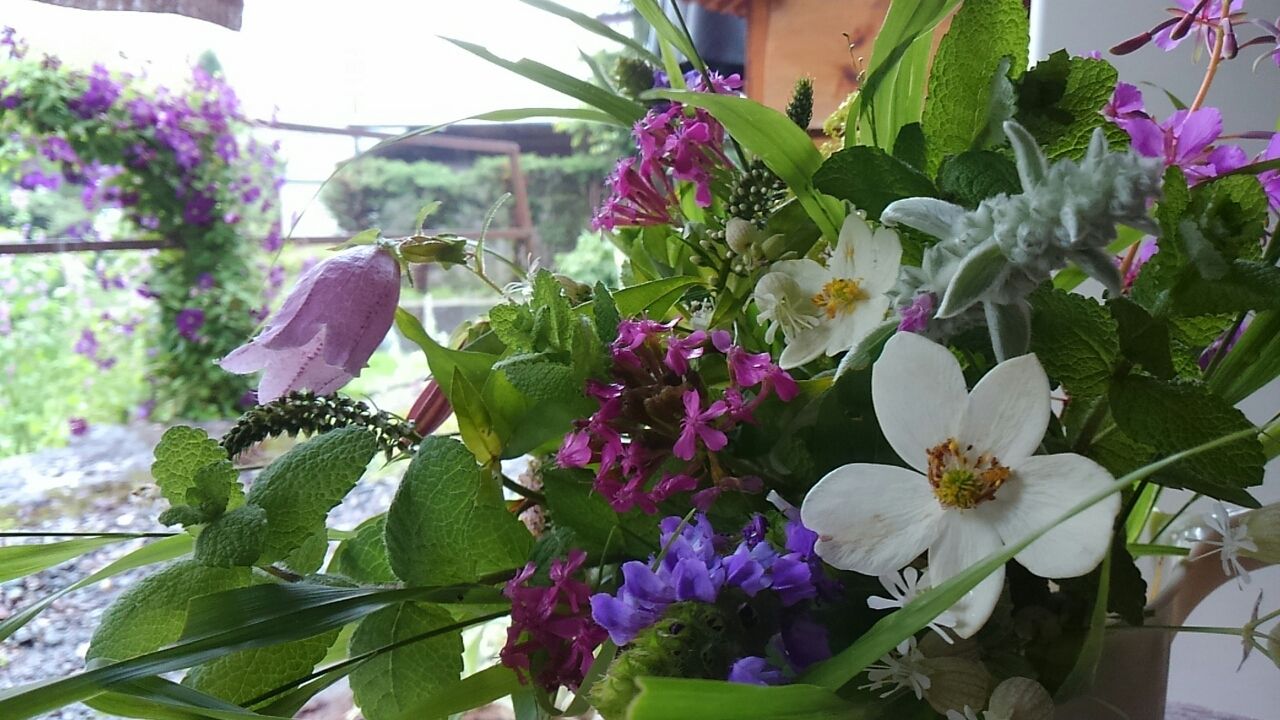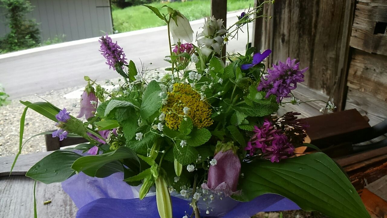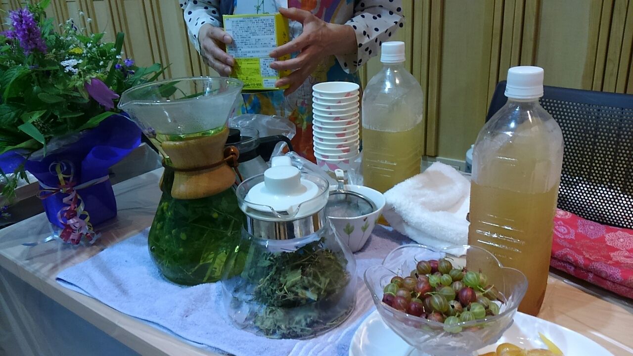 今朝の気温16度。曇り。。。今日は、夕方から、木曽町文化交流センターでのイベントに参加させて頂きます。。先日来より色々準備。。昨日はハーブや山野草の花摘みし、山水汲ん