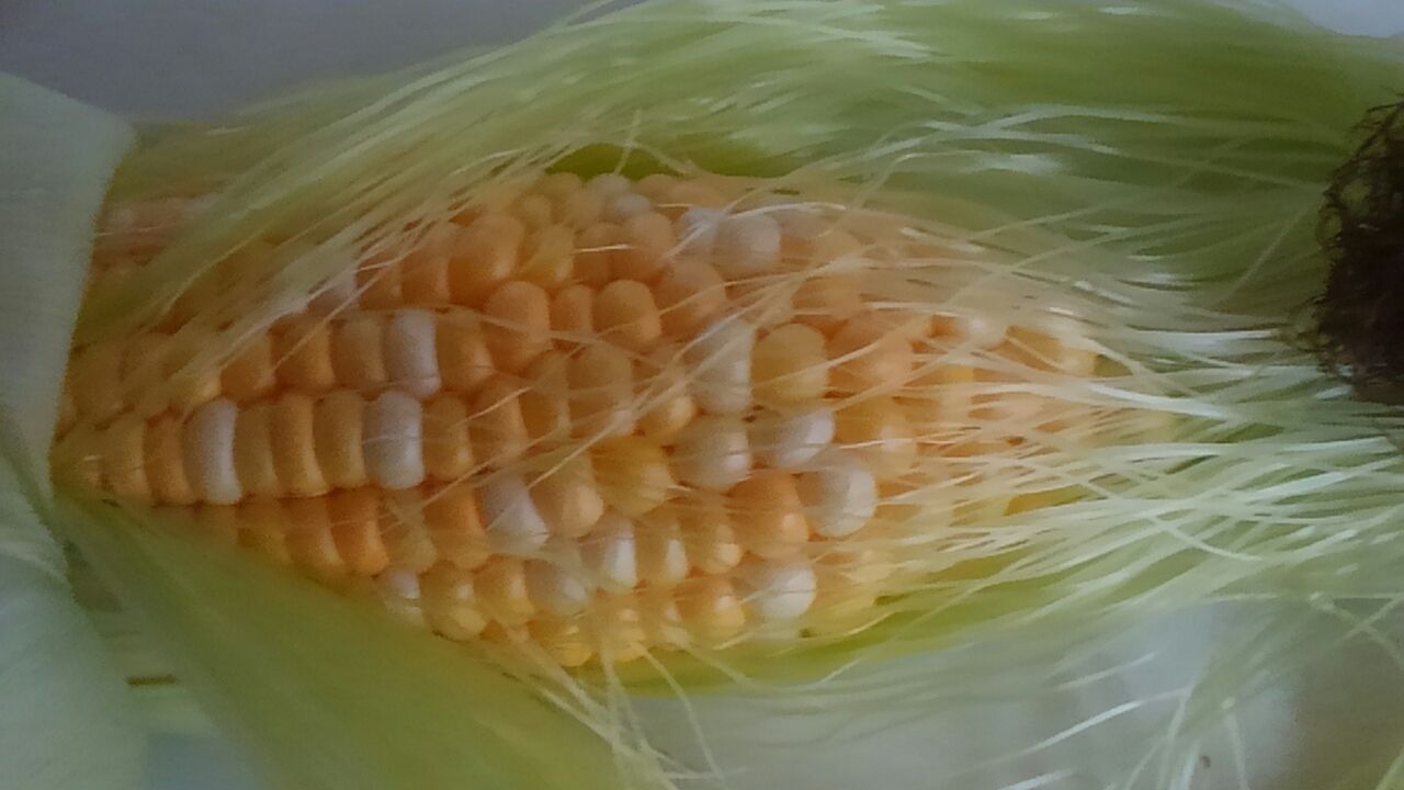 ました。。。。トウモロコシ大好き。。。な。。。綺麗な実が、光っています。。。が、開田高原のは、もう少し甘い。。。待ち遠しいです。