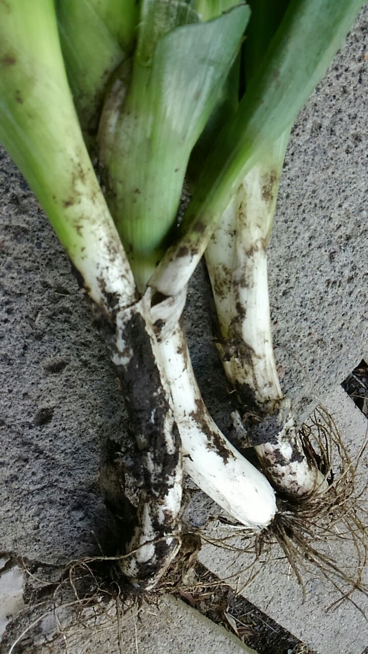 た。。近くに咲く桔梗の花。。。写真撮っていたら通り掛かったおばさんが、摘んで来た葱を半分
