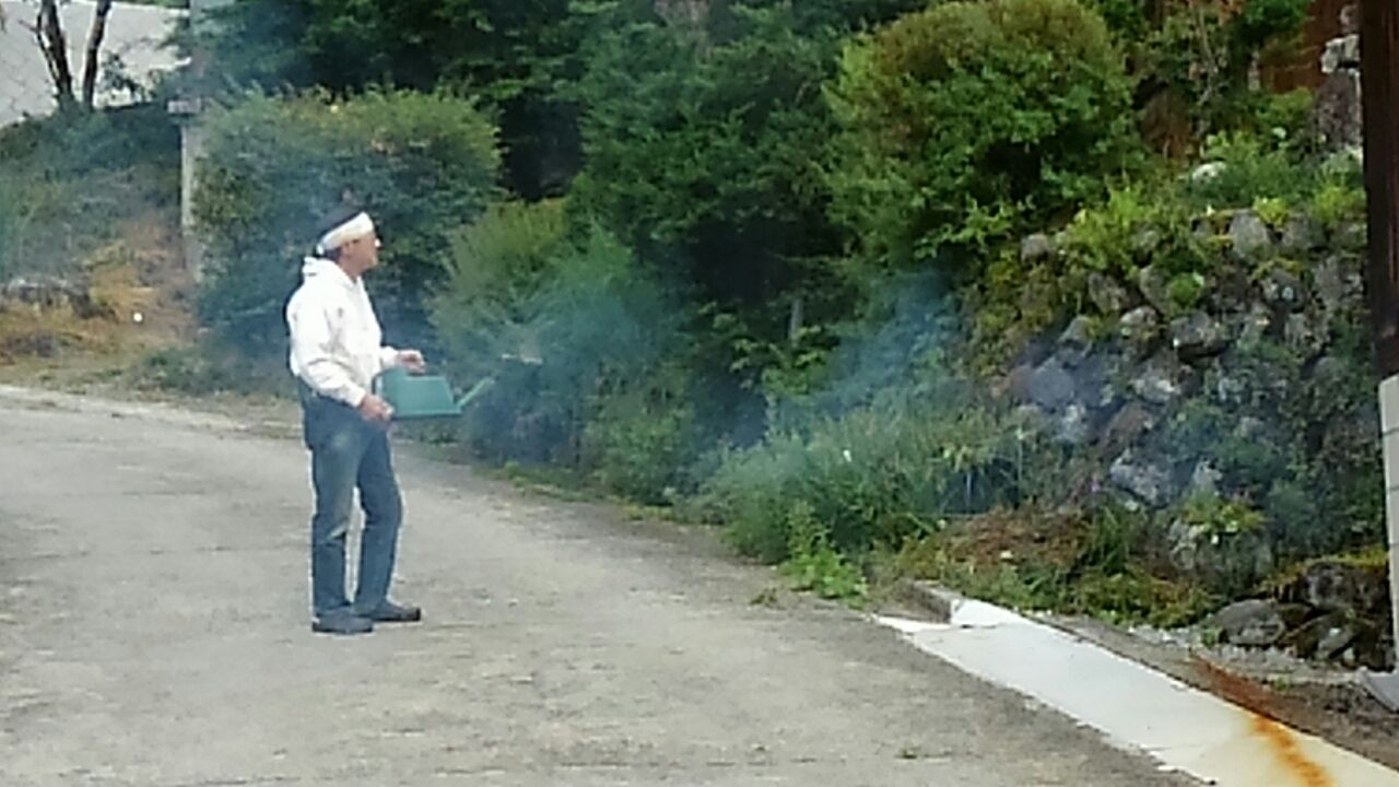 今朝の気温17度。雨。。小雨が、もう直ぐ上がりそうですが。。今朝は、5時起き。。。柳又集落の守り神様の草刈り。。御神酒や湯呑みお供えのお米を用意して、草刈り機持って出掛けて行きまし