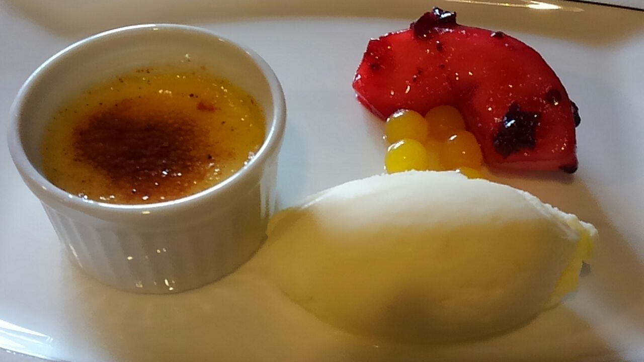 の蟹のテリーヌを。。温かいパン。。デザートは、クリームブリュレと栗アイスにコーヒー☕を注文。。ランチはお代1600円。。どれも美味しく。。