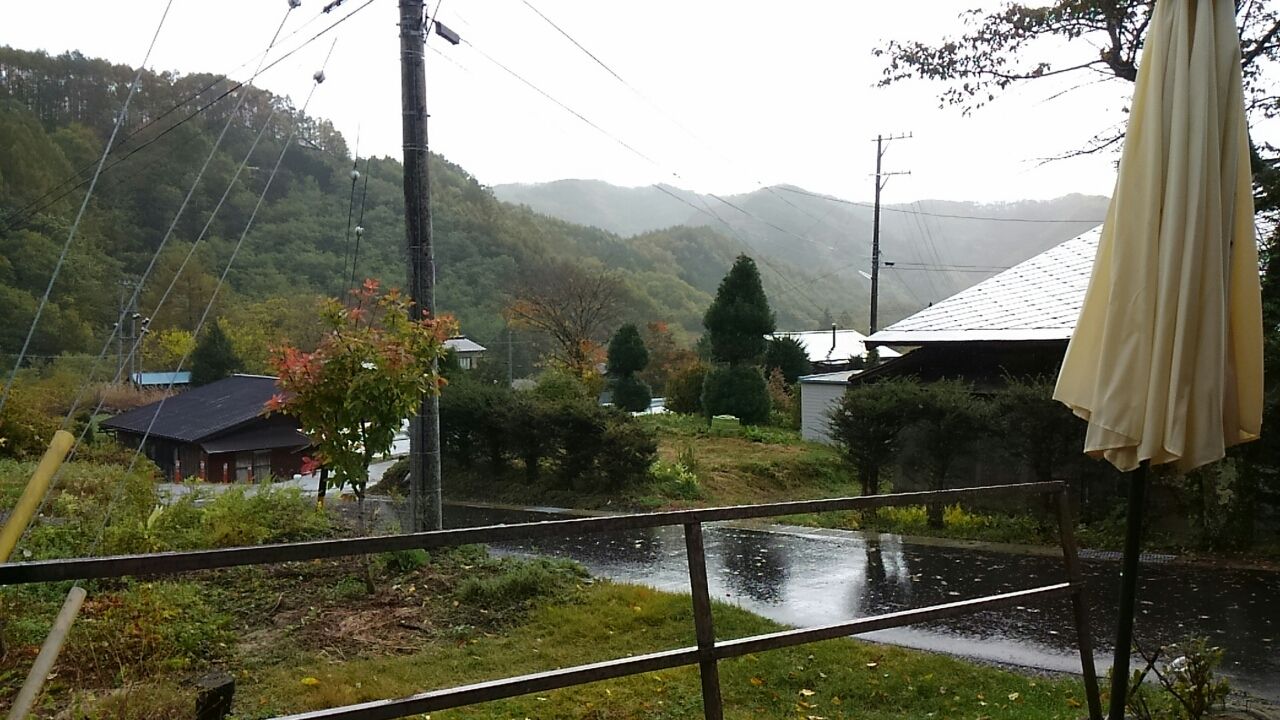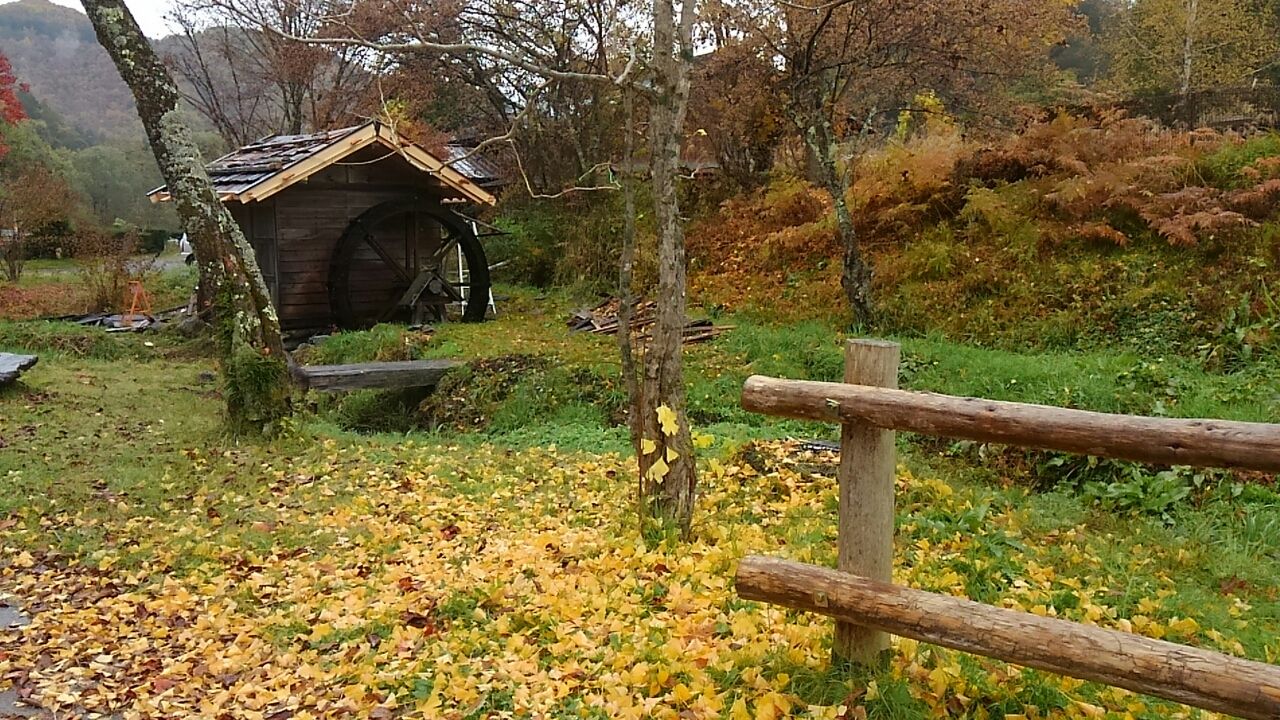 今朝の気温7度。。雨。。あめですが、開田高原の紅葉真っ盛り。。です。 杜子春は、台風前に。。水車小屋の屋根だけは。。。と昨日少し雨降る中もト