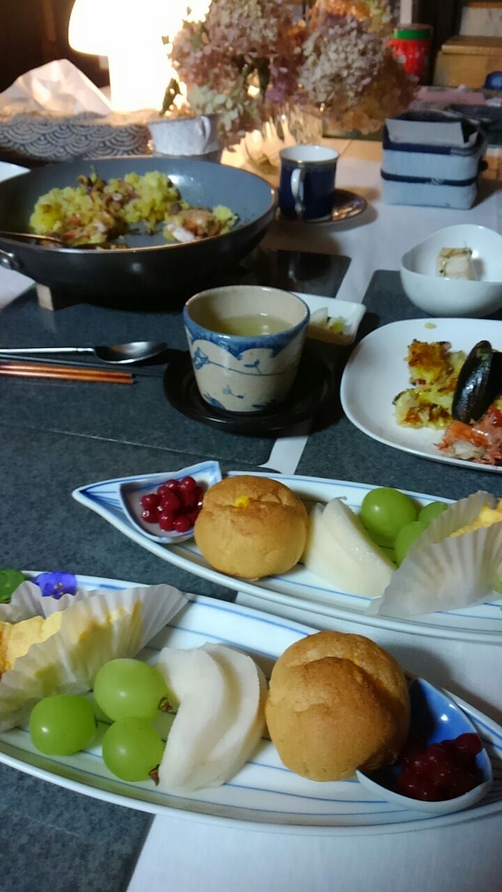 た。が又。。次の洗濯物。。朝から部屋の片付け。。縁側から、の紅葉も少しずつ見応え。。栗の切り株から、白いキノコ達。。。朝からカラスが、7、8羽、旋回していてちょっと気になりました。が、居なくなり。。各所で畑仕舞いして食料探しの相談だったかな。。二日づつけての外出に、今日は、ゆっくりする積もりでしたが、やる事色々。。布団をリフオームし、長座布団。。早く作り