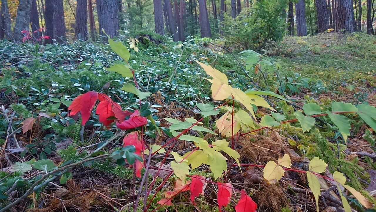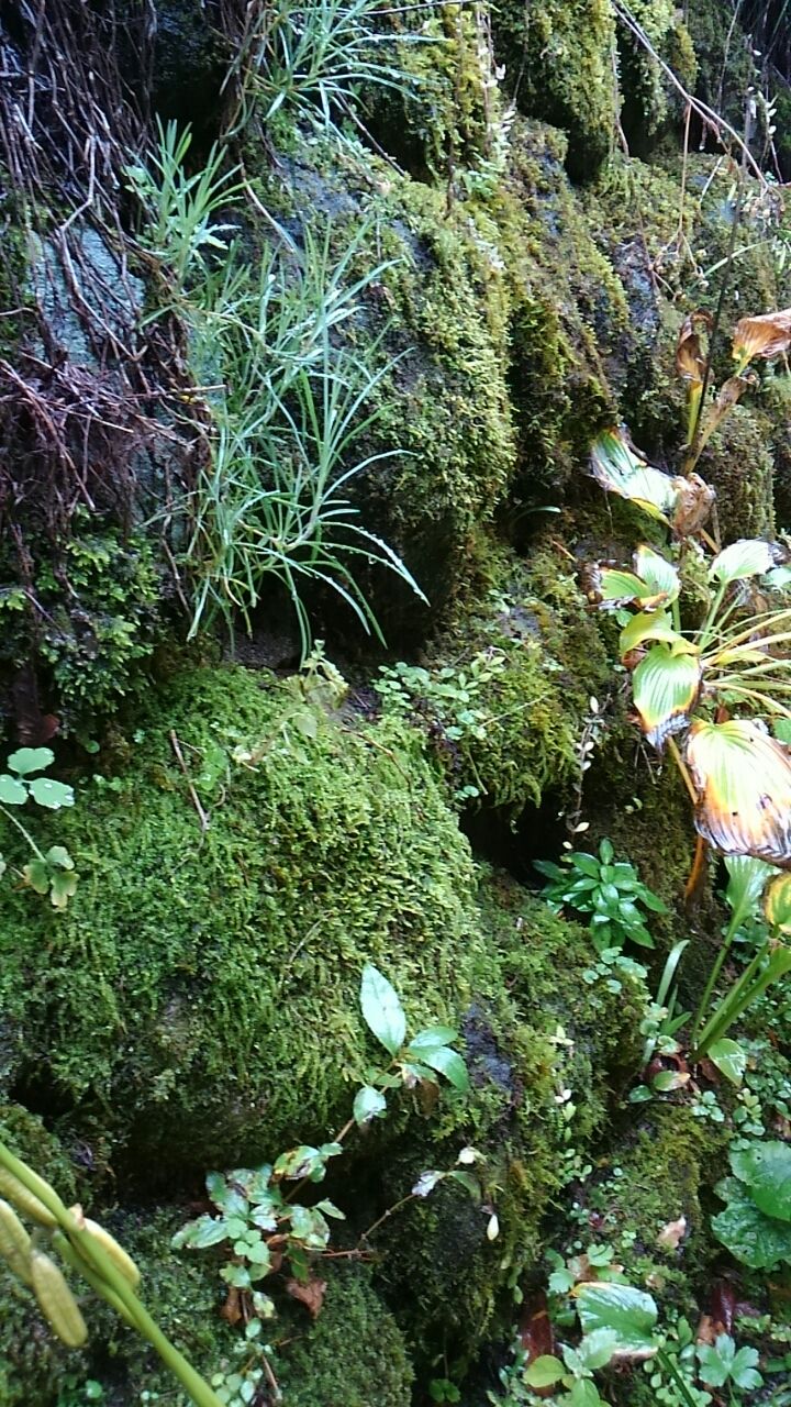 方には、半分が、落ちました。。 遠望の木々も色様々になりつつ、この雨に、又。。止まり。。今年は、長〜く紅葉楽しめそうです。。 道沿いの雑草取りで少しづつスッキリすると、様々な苔の美しさ。が目につきます。。また苔盆栽2鉢出来上がり。。ました。