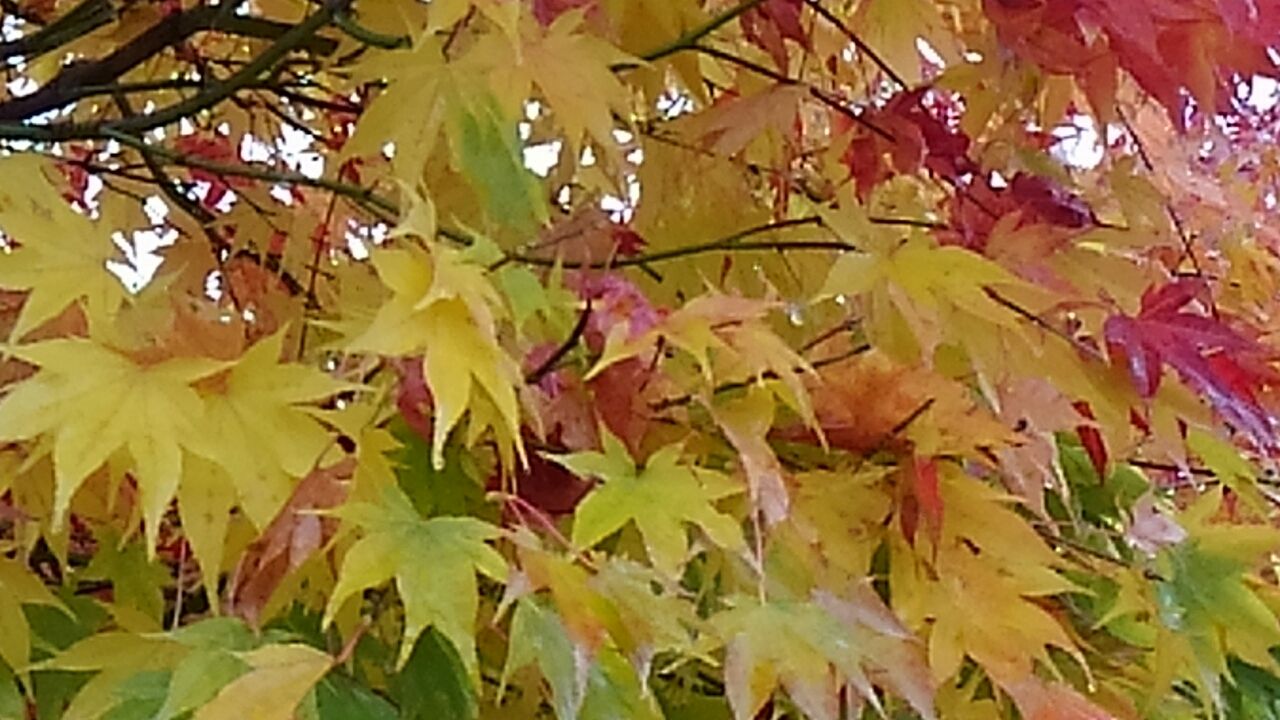 は、未だ美しく。。庭の木々は、雨風で大分落ち葉になりました。