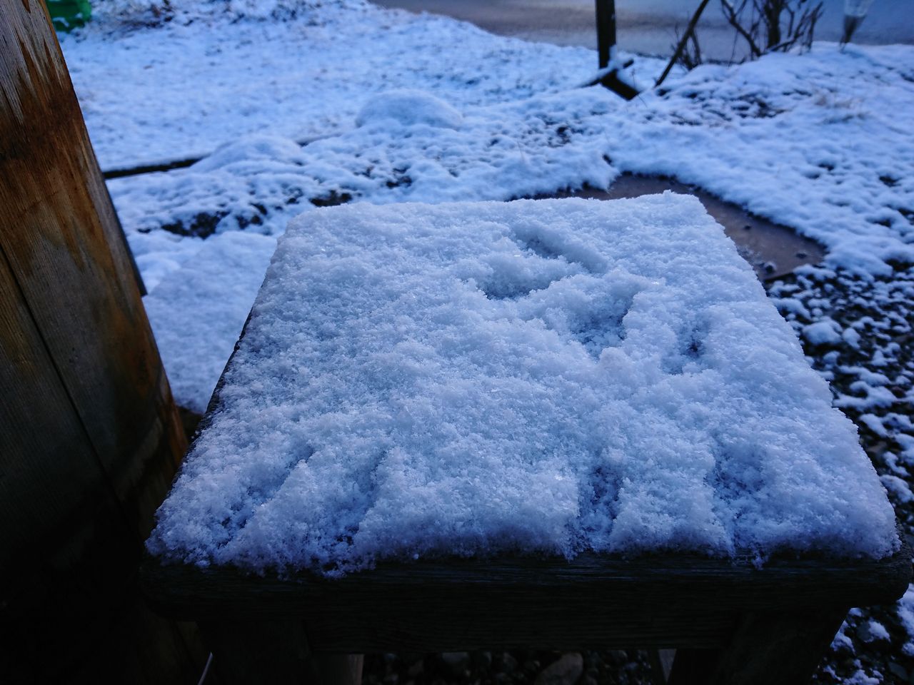 今朝の気温マイナス7度。雲り。。昨夜から時々降った雪が、1cm程積もりました。水道の凍結防止線。。過日入れてあるか確認。。。大丈夫でし