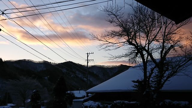 今朝の気温マイナス7度。室内薪ストーブ炊いて10度。。晴れ。。今朝は東の空が赤く。。風は東に流れて。。写真を撮るも。。。またまた画像が入らない。。。殆ど熔けていた雪でしたが。。。昨夜少し降った様で、畑にほんの少し積もっています。。寒空ですが突然赤バチの巣のある辺り。。軒下から野鳥が素早く飛び立ちました昨日はパソコンで資料作り。。一月も後半になり、2月は逃げる。。皆さんのフェイスブックからは各地では、水仙に。。もう梅も咲いているとの事。。。3月迄も早く来そうな。。。それにしても今日から大寒波が来ると。。。言う事ですが。。。