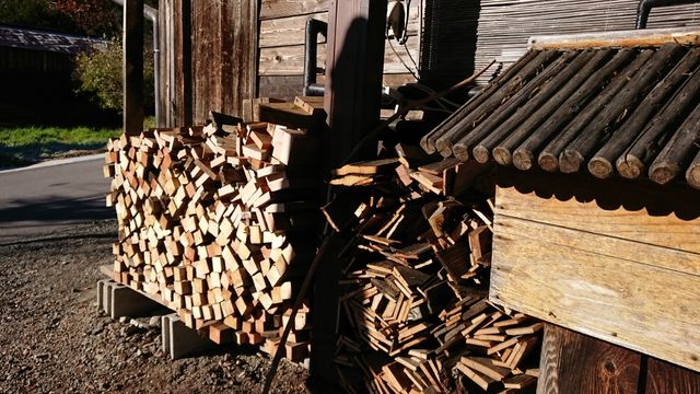 寒〜い朝です。。寒暖計はマイナス5度。室内14度。。表に出ると、畑は白く。。少しで手先が、ジーンとシバレる感じ。。早々にお隣の煙突からは煙りが上っています。。我が家も早速薪ストーブに火を付けました。。玄関横の軒を作り直し。。その時に出た板屋根の端材は、良く燃えて。。チカチカパチパチ。。部屋はほんのり暖かくなって来ました。