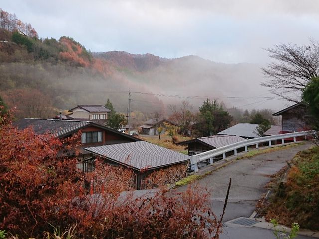 今朝の気温6、5度。今の気温11度。。今朝は窓から見える朝靄に誘われて。。着替えもしないで写真撮り。。やっと9時を過ぎて。。陽が射し始めました。。畑は。。もう一度。草刈りしたいけれど。。今日も落ち葉🍂に木々 も湿っぽく。。そろそろ始めないと、結城紬のコート創り。。