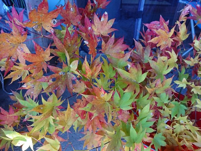 今朝の気温マイナス1度。晴れ。昼間は暖かくて今13度。紅葉🍁🍂はまばらに吹く北風に散り始めた木の葉に。楓は今を盛りにまだまだ美しく。。もう少し楽しめます。。