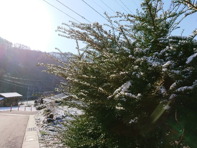 昨夜ほんの少し雪が。。降った様です。屋根に少し残っています。