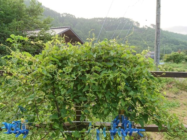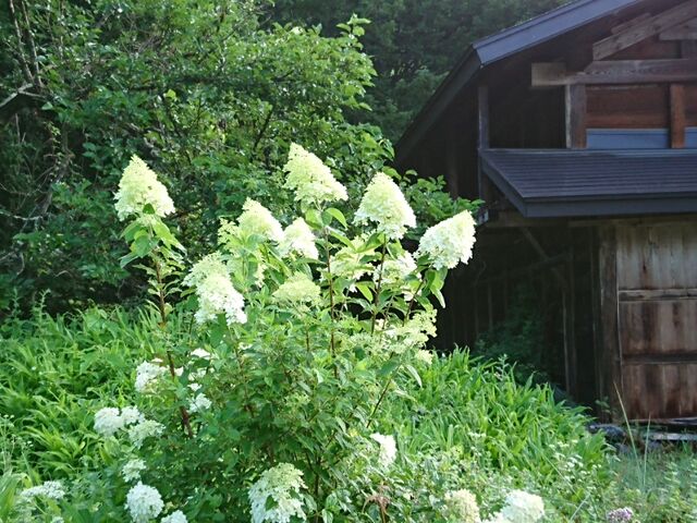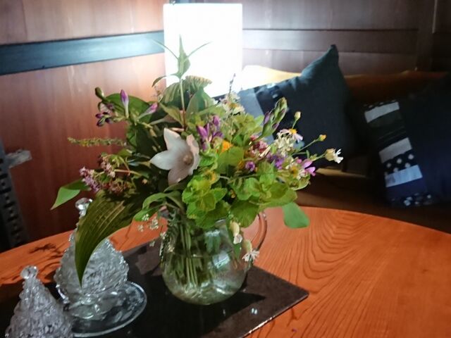 今朝は起きたついでに。桑の木の枝先に又、繁殖しかけた「アメリカシロシトリ」鋏で。杜子春が。。切り取ってくれて。。ナイロン袋へ入れ、燃えるゴミに出し一安心。。ついでに。小さい木々の剪定と、雑草とり。。に花摘みもしていると。