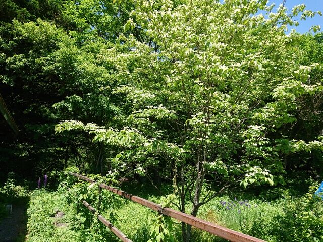 今年は、もう伐ってしまう「ヤマボウシ」は、昨年の不作に比べて豊作満開。。一本伐って。。