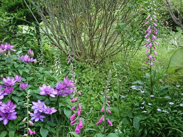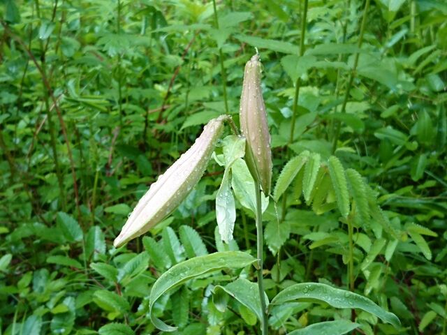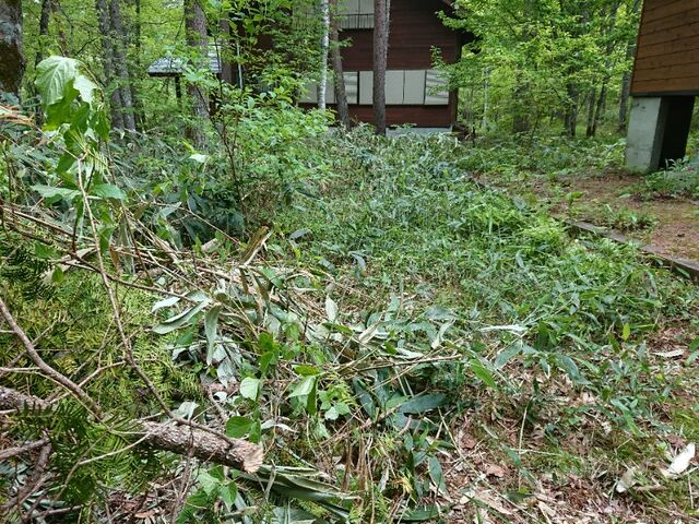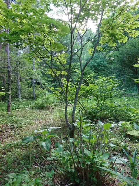 昨日午前中は、庭の手入れ。雑草と低木が。。生い茂る場所。。シダは鎌で刈り、後は、鋏で少しづつ。「マイズルソウ」や「ショウジョウバカマ」を残し、増えすぎる「ギボウシ」も取り去り、色々な草木が出て来ます。「イツツバアケビ」や、「コシアブラ」の木に、こちらにも生えていた「スズラン」の葉っぱ。。「ササユリ」は、特に伐らぬ様に。。