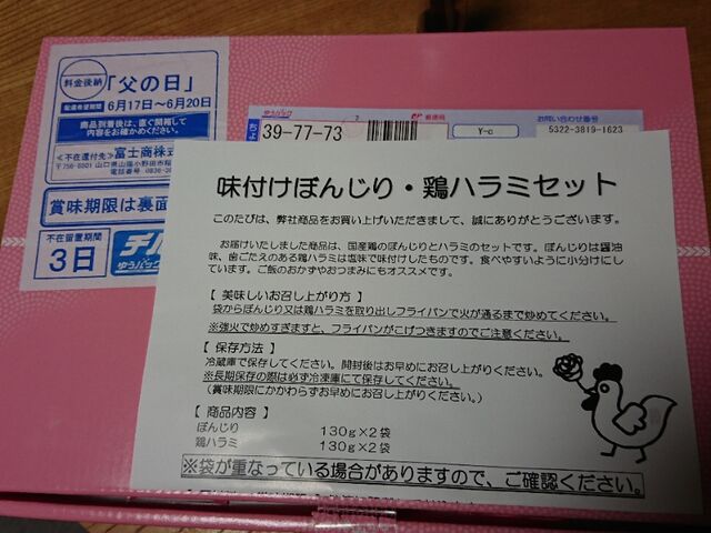 母の日にも、プレゼントが届きましたが。。一昨日は、「父の日」の為の杜子春大好きな「ボンジリ」が届きました。早速頂いています。