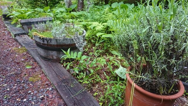 でも、と柳又へハーブや。山野草の掘り起こし。。「ギボウシ」や。「シロバナホタルブクロ」「ヤナギラン」「マツムシソウ」「ラショウモンカズラ」に「スグリ」の幼木。。「シレネブルガリス」や、色々を汗かきながら掘って下さり。私は伸びきった三ツ葉を鎌で刈りながら。。ブルーベリーの回りハーブの回りの確保。
