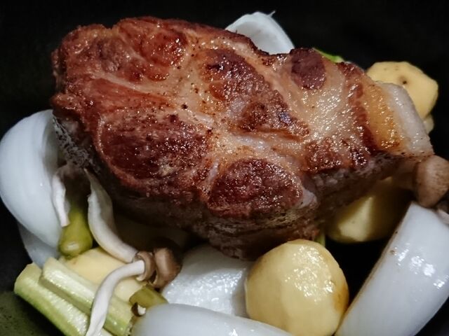 豚のローストも出来上がり。。でも夕食は、酢豚。。