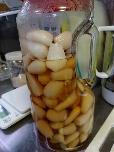 完熟梅も汁が上がり、旨く漬かりそうです。。昨年の梅で「ネギ梅」に種取った梅干しに細ネギのみじん切りを練り合わせて包丁で叩く。。酒のつまりにこれも杜子春の大好物です。
