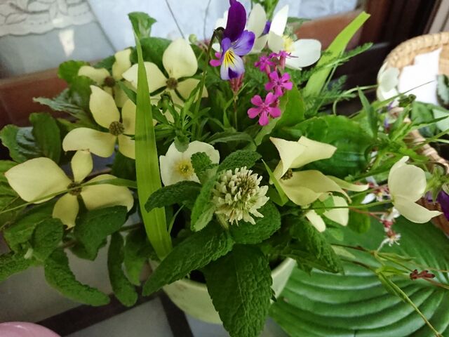 雑草だらけに。なってしまった庭に。少し咲く花を、一掴み飾ってみました。
