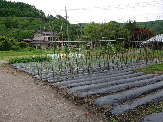 畑には、トウモロコシが20cm程に育ち、例年の様に「ササゲ」の苗。。