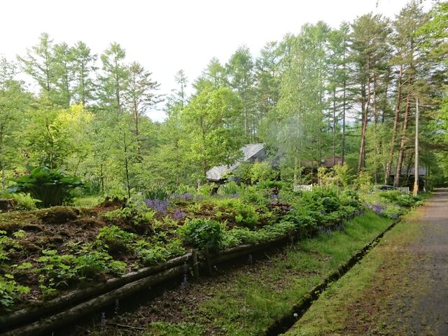 帰りも、てくてくと新緑の山荘の木々や、花々に各家の庭のしつらえを見物しながら、ステキな散歩。。本当に良い所に住めたと。。ゆっくりと家にたどり着きました。