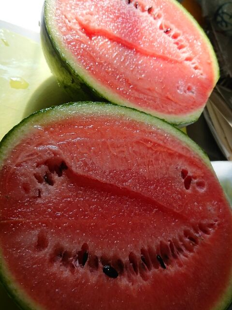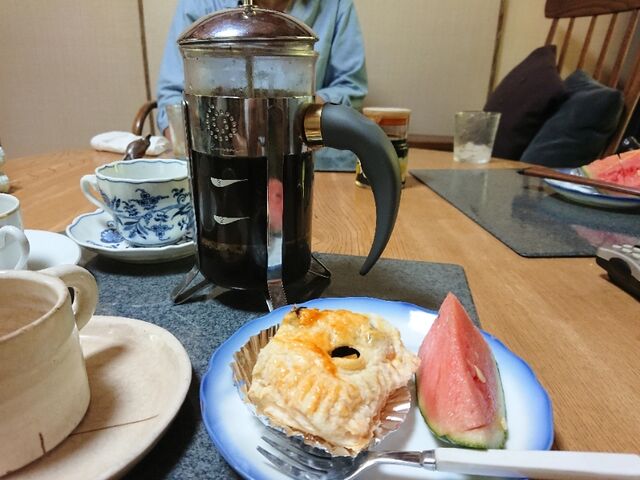 食後は昨日焼いたアップルパイに小さなスイカ。。