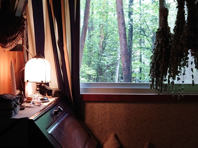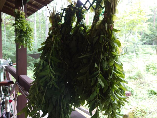 東窓に吊るしたミントにオレガノが少し小さくなり、部屋の中は甘い薫りがします。