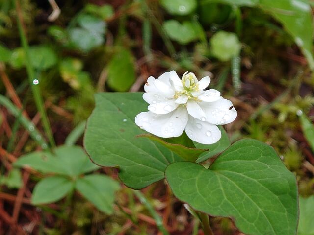 昨年頂いた「八重のドクダミ」は土の中から小さな芽を出し、まだ5cm程ですが。白い八重の花が咲きました。