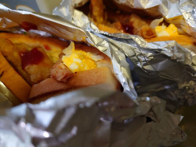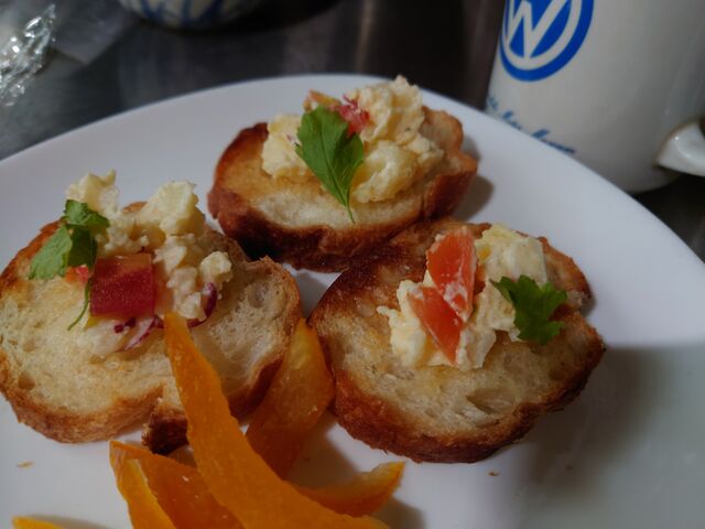 準備終えて私もコーヒーに海老サンド。。結構イケます。