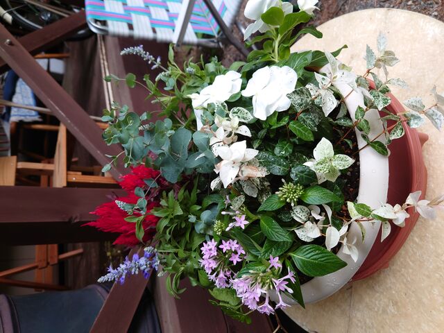 柳又では山野草やハーブの小さな花束創る事の楽しみ。癒やしの時間でしたが、山荘の庭はまだ育て中。。