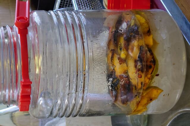 これ以上は何とも成らない様子。。花梨を取り除き「花梨酒」は諦めました。