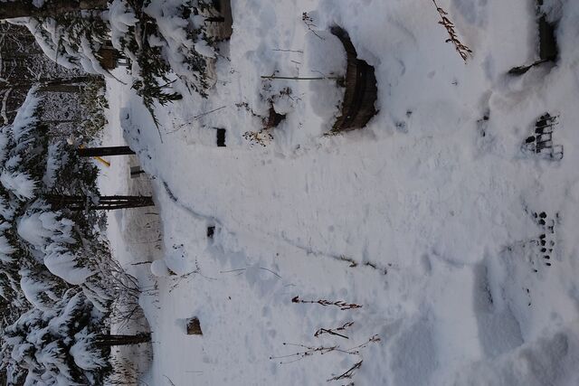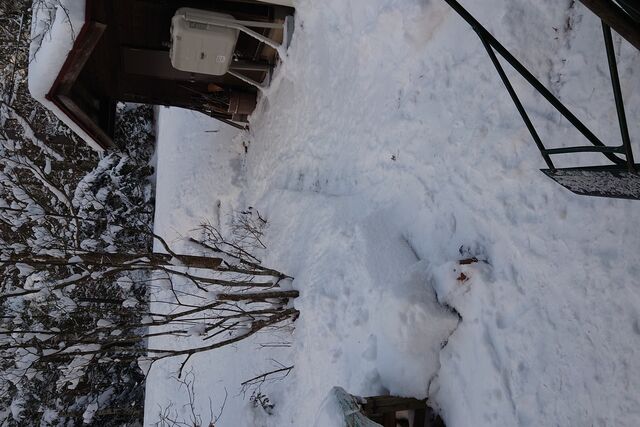 昨夜も少し雪が降った様ですが。3連日の好天で雪溜まりの積雪50cm程に凹みました。。遠くでキツツキの音。。