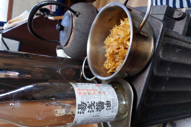 冷蔵庫の隅っこ奥にタッパーはジンジーシロップ作った残りの生姜。。永く置きっぱなしていました。。小さく鋏で切って「生姜の佃煮」作り。。春に連休にお土産で戴きました「湯浅醤油」最後の醤油に水を加えて、クツクツ薪ストーブの上に置きました。良い具合に煮上がります様に。。鰹節雑魚と昆布の粉を加えてあっさり沢山煮上がりました。朝食の一品に成ります。